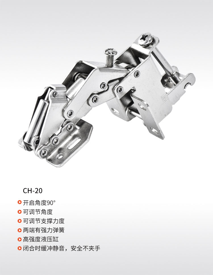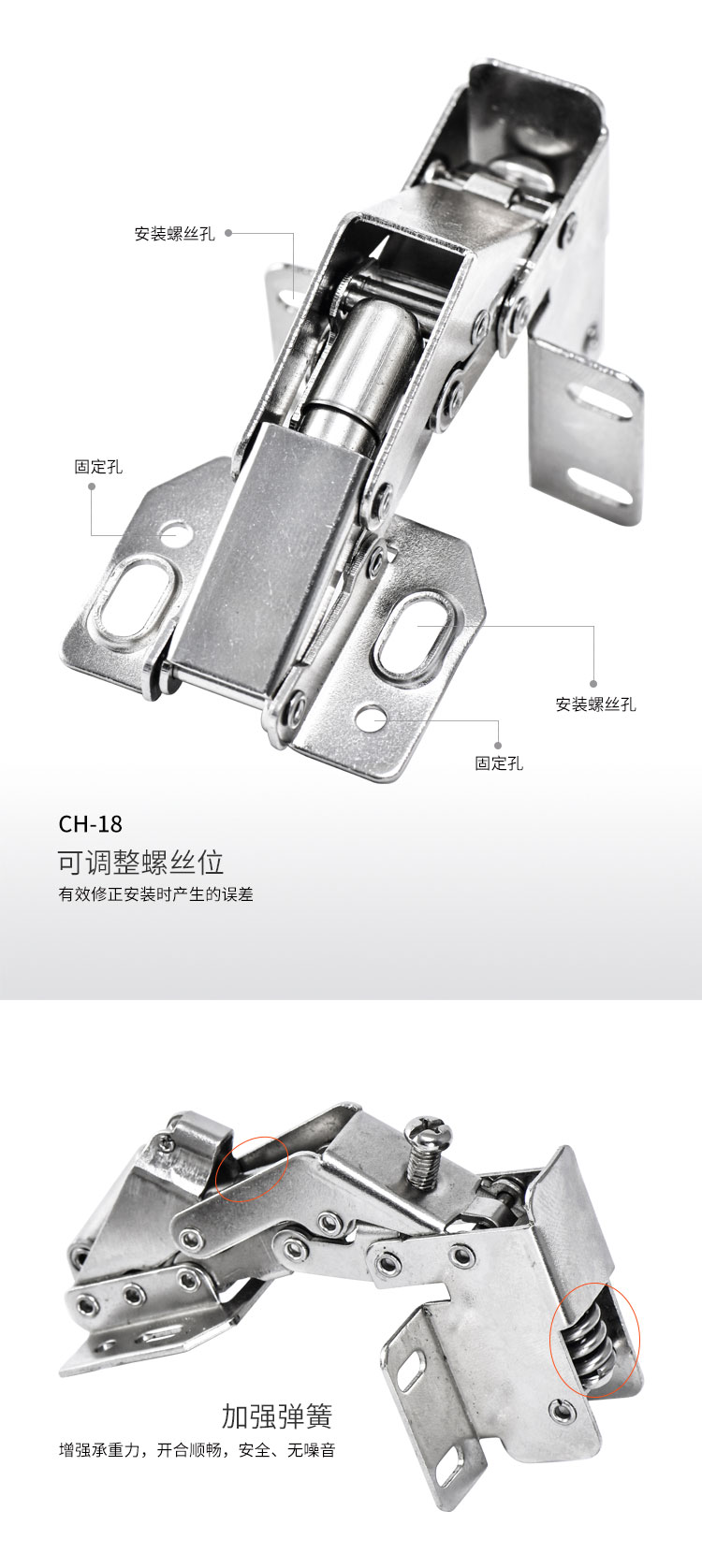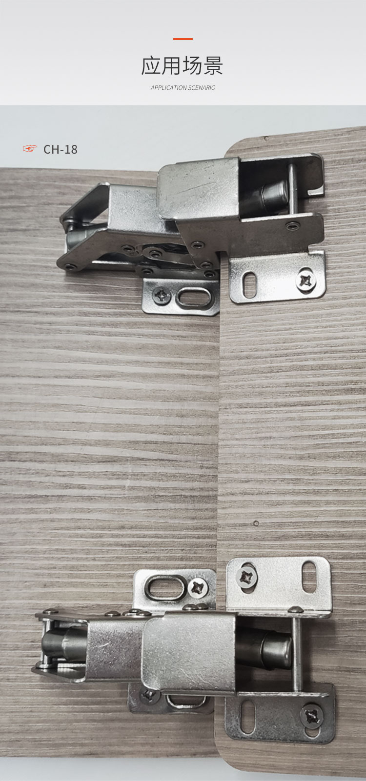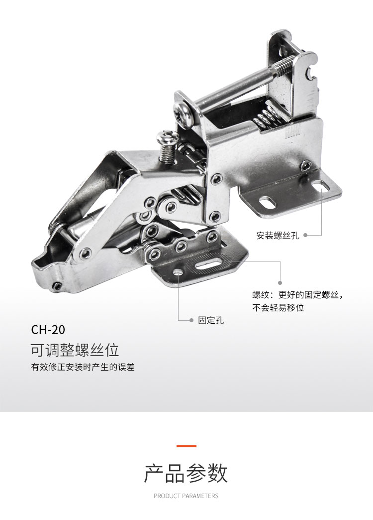 材質(zhì)冷軋鋼,鎳色,開啟角度90°,適合門厚15-18mm,適用于90°轉(zhuǎn)角柜,層疊門板安裝,開啟L型,帶調(diào)節(jié)力度和開啟角度螺絲
