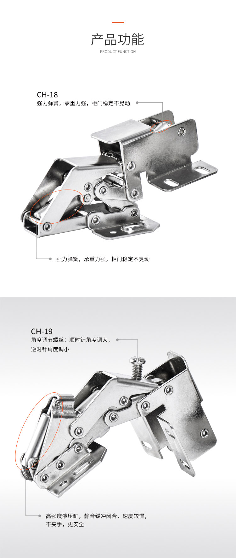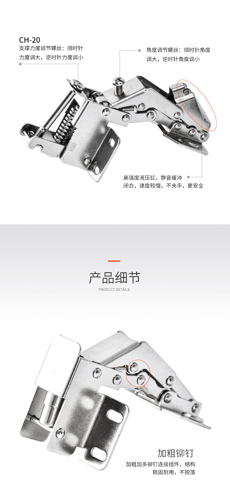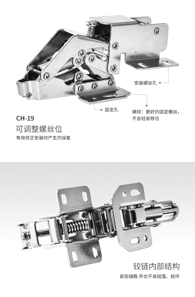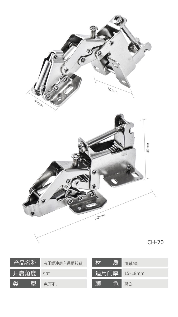 材質(zhì)冷軋鋼,鎳色,開啟角度90°,適合門厚15-18mm,適用于90°轉(zhuǎn)角柜,層疊門板安裝,開啟L型,帶調(diào)節(jié)力度和開啟角度螺絲